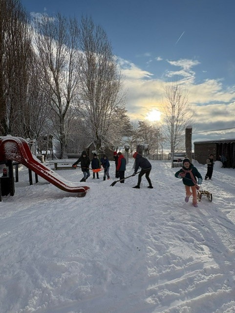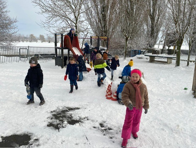 Tijdens de pauzes verandert het schoolplein in een echt winterwonderland. Overal zijn de leerlingen druk bezig: er verrijzen sneeuwpoppen met scheve neuzen en trotse glimlachen. Er is een zelfgemaakte schans waar fanatiek vanaf gegleden wordt en natuurlijk wordt er volop gesleed. Lachende gezichten, rode wangen en de sneeuw die alle kanten opvliegt: het levert prachtige plaatjes op. Misschien wat minder fijn voor alle weggebruikers en mensen die afhankelijk zijn van het openbaar vervoer, maar voor de leerlingen was het in ieder geval deze 2 dagen puur genieten. Dit is winterpret op z’n best!