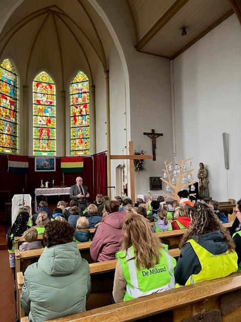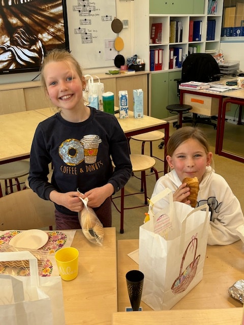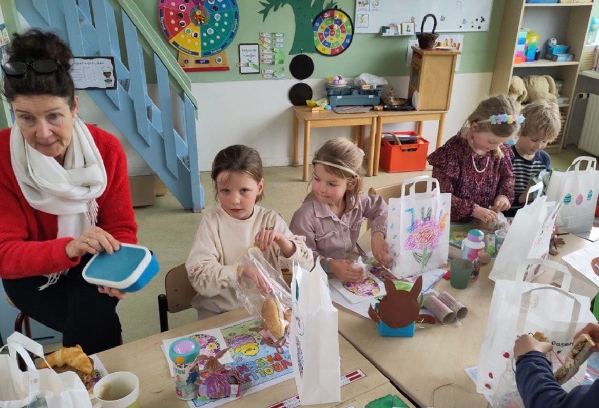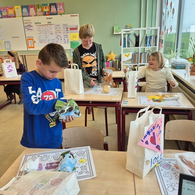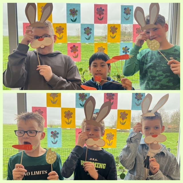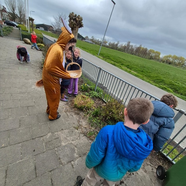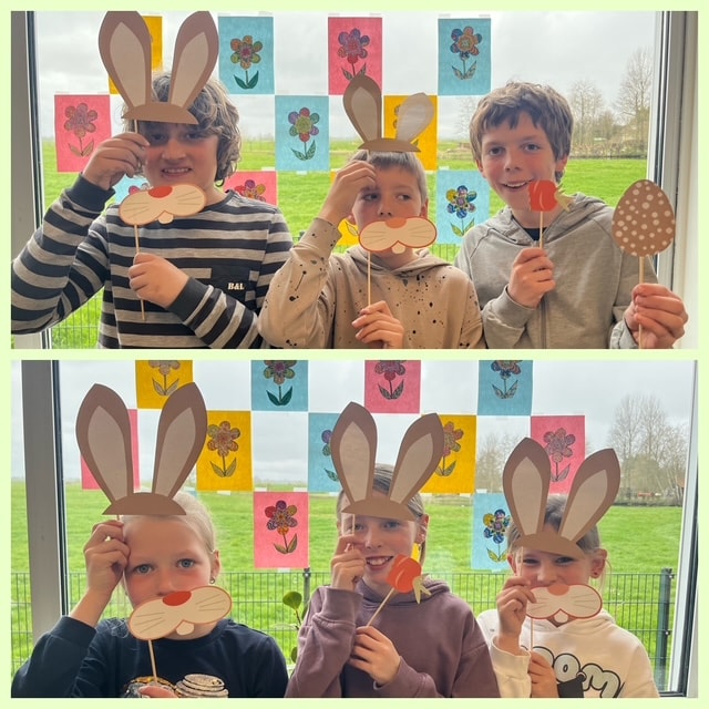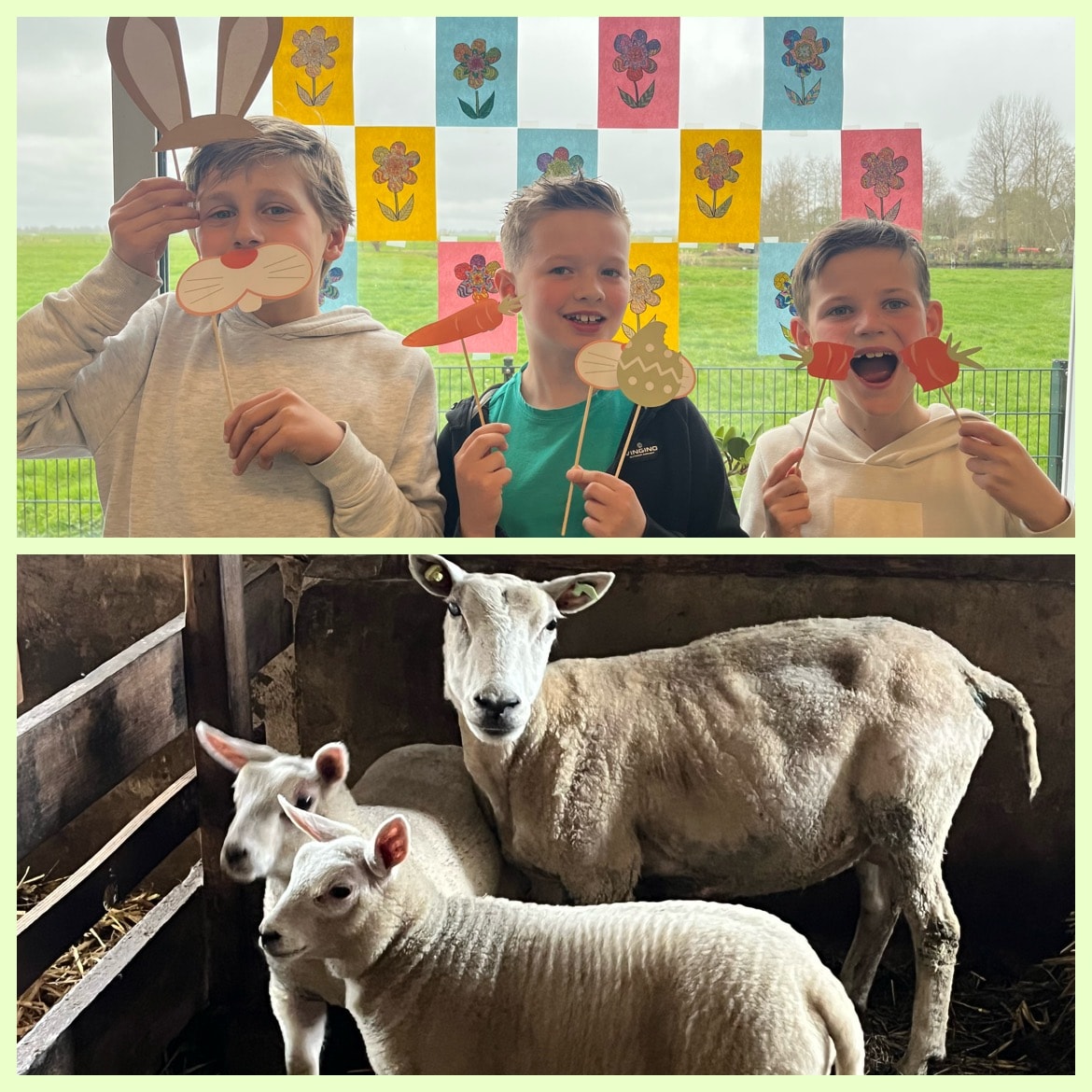 Op Witte Donderdag waren we uitgenodigd door de pastor om te luisteren naar het paasverhaal. Een mooi moment van bezinning met elkaar. Daarna trokken we eropuit: een fijne wandeling door het weiland en natuurlijk even kijken bij de lammetjes op de boerderij. De oudere leerlingen liepen hand in hand met de jongere leerlingen. Samen genieten en voor elkaar zorgen. Rond de lunch was er een leuke verrassing: er waren lootjes getrokken en iedereen had een paaslunch gemaakt voor een klasgenoot. De paastasjes waren ontzettend leuk versierd: Wat een creativiteit en gezelligheid! Tussendoor zijn er nog spelletjes gespeeld en is er geknutseld. ’s Middags liep de Paashaas op het schoolplein en die had het druk. Want zowel de onder- als de midden -én de bovenbouw kwamen paaseitjes zoeken. Altijd een feestje zo’n zoektocht in de buitenlucht. Op naar een heerlijk lang weekend! Fijne Paasdagen allemaal.